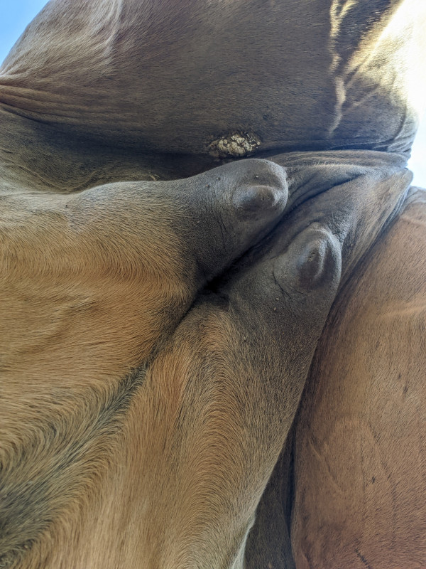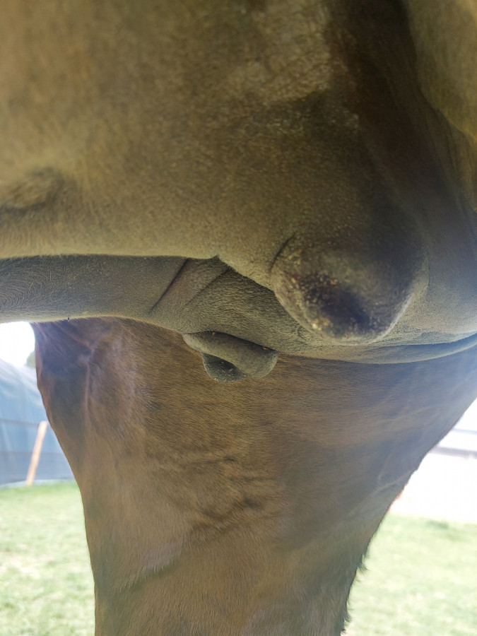 Musculairement, elle est bien détendue de partout. Elle n'a pas touché à son foin, seulement sa ration ce soir. Peut être dans le weekend.. ? J'espère pour elle en tout cas car elle est vraiment énorme.