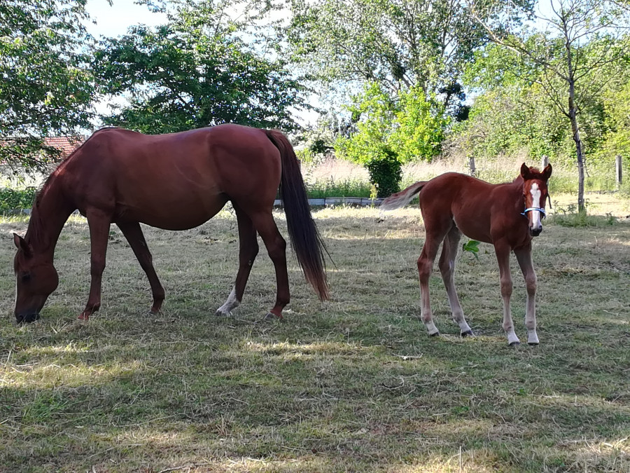 J’appelle quelqu’un du stud book selle français la semaine prochaine, une amie s’était renseignée pour moi l’année dernière et m’avait transmis que je devrais pouvoir l’inscrire au selle français sous la mère, pas besoin d’attendre des performances plus tard (en modèle et allures à 2-3 ans ou en concours à partir de 4 ans). Mais en rappelant le stud-book cette semaine, ce n’était finalement pas le cas… Donc je retente la semaine prochaine avec le contact qu’on m’avait transmis (en vacances cette semaine) et je verrai!