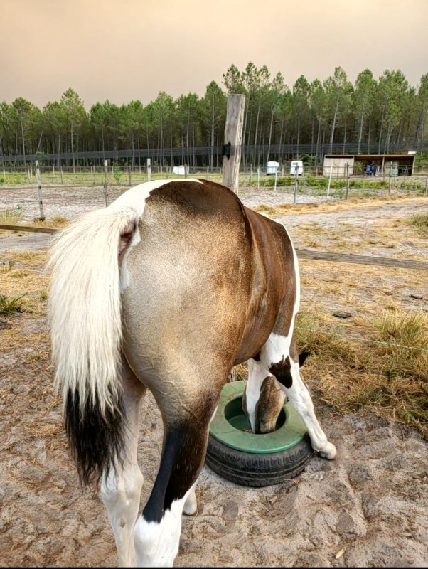 Nous pensons tous avec mes proches et des éleveurs, qu’elle a perdu son poulain en fin d’hiver début printemps avec l'âge, sa crise d’emphysème dû au pollen et le faite qu’elle est chopé des poux qui l’on fait pas mal maigrir ...