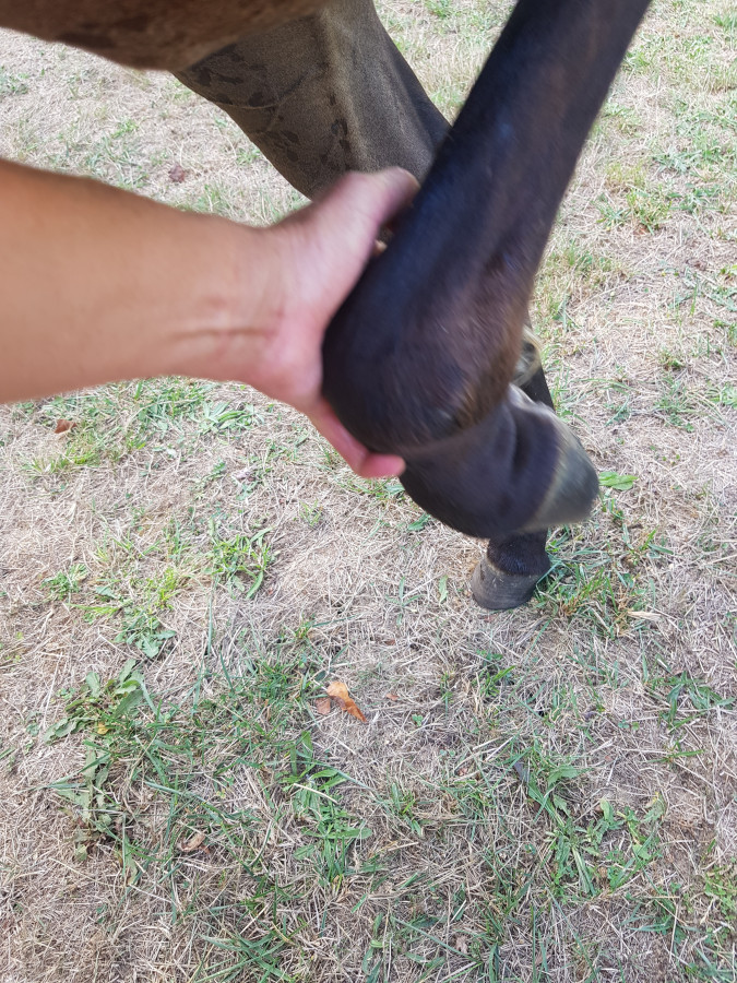 Il en a profité pour pucer et identifier, et ils ont remarqué une petite hernie ombilicale, les éleveurs se chargent de l'opération avant le sevrage.