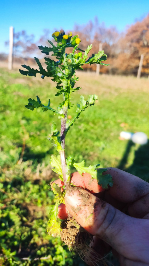 En parlant de remettre à l'herbe, je suis bien embêtée cette année car mes prés sont colonisés par du séneçon commun (moins toxique que celui de Jacob, mais quand-même). En regardant autour de moi, c'est le cas de beaucoup d'autres prés. La sécheresse de l'année passé a dû leur laisser un terrain favorable. J'ai essayé d'arracher à la main mais il faut me rendre à l'évidence, je suis clairement dépassée, ça fait des massifs et les moindres plantules fleurissent. Je commence à songer à pulvériser à pied un herbicide sélectif sur les zones infestées.