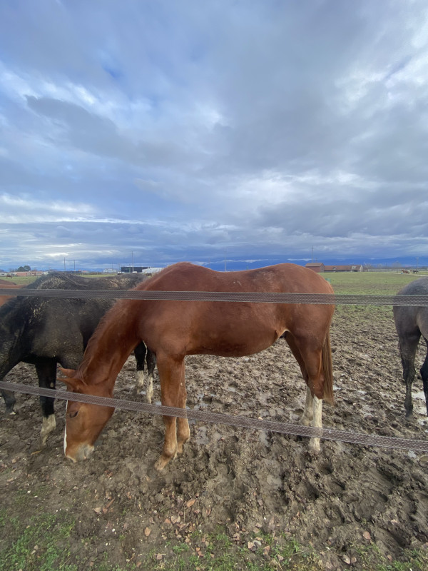 ici pas de bobos heureusement mais bilan ocd prévu ce printemps dès que je serais rétablie, j'ai extrêmement peur.. en plus c'est un grand modèle, il doit faire un peu plus de 160, les fesses sont à 165 et le garrot à bien rattraper.. sinon petite visite hier après 3 semaines sans le voir, il est venu me voir à la barrière, toujours fidèle à lui-même