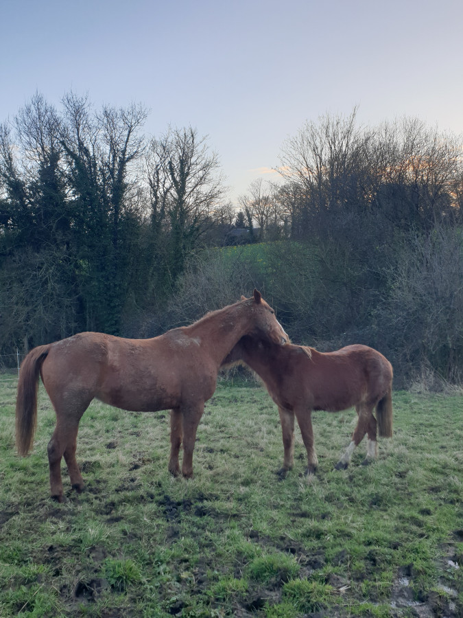 jus.tii.ne top ! j'espère que ça sera parei pour Melrose, en tout cas ç aen prend la bonne voie !pour le moment il n'a aucun gonflement j'espère que ça va rester ainsi, ce qui me fait peur c'est la remise au paddock, qu'il fasse l'andouille et en plus de ça notre paddock d'hiver commence à être au bout de sa vie, plein de boue, de crottins, malheureusement je vais essayer de pousser pour qu'ils retournent au pré le plus rapidement possible pour quitter ce paddock car j'ai peur d'une infection ou d'un truc du genre ...