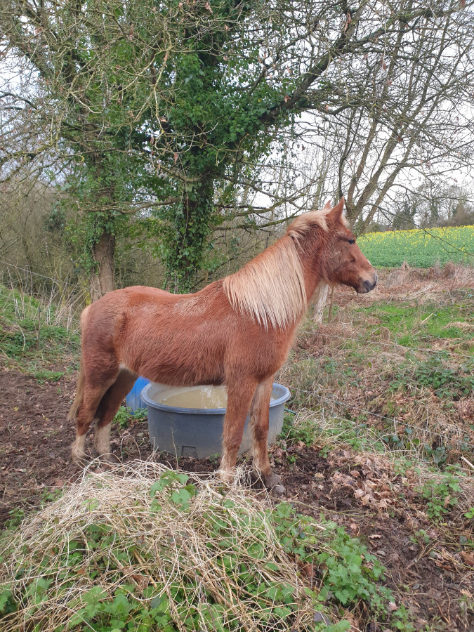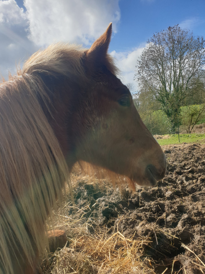 Il m'a fait une petite frayeur ce matin il s'était coincé l'antérieur dans le filet à foin ...