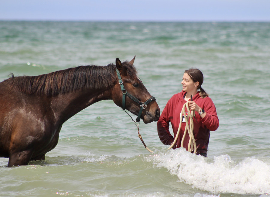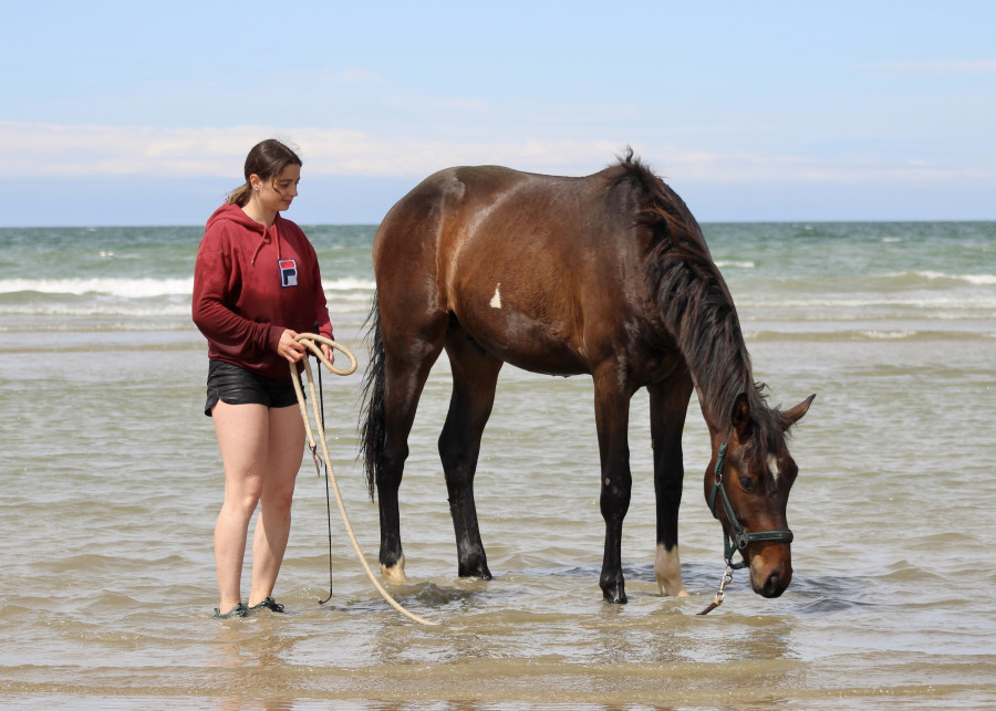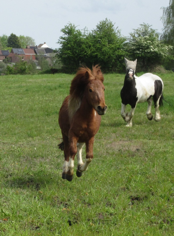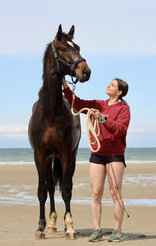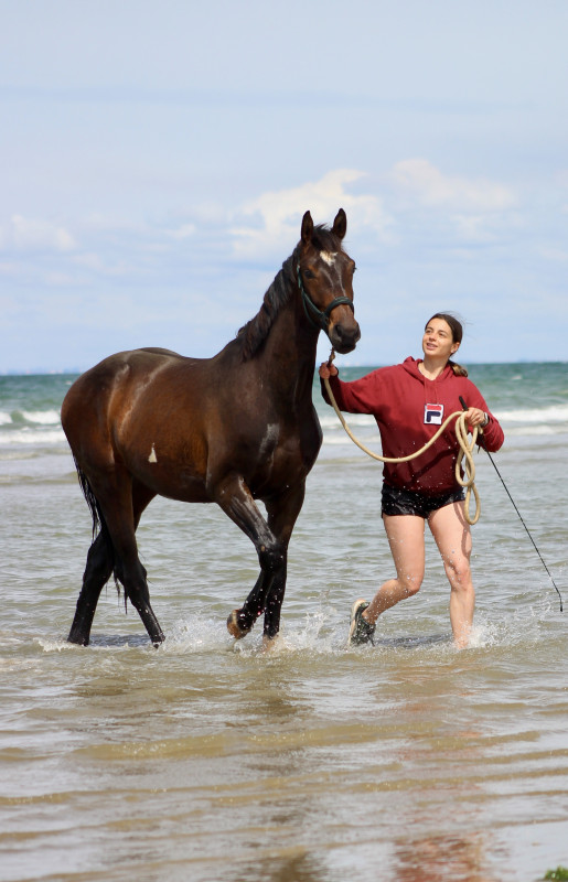 Par contre du coup, je la brosse de temps en temps et là je la marche un peu en piste pour préparer le concours de modèles et allures afin qu'elle soit aux ordres (sans que ça soit du vrai travail à pied, c'est juste 5min vérifier qu'elle s'arrête à mon corps et me respecte puis on rentre) mais je ne la sors pas des écuries ni rien, pas de balade et pas de séance de travail à pied. En fait excepté le pansage je la manipule le strict minimum elle est déjà rentrée/sortie tous les jours en respectant l'humain tout en lui faisant confiance c'est tout ce qu'on lui demande jusqu'à son débourrage; juste ici exceptionnellement elle sera transportée et un peu plus exposée pour le modèle et allures mais c'est tout (et encore à la base le M&A c'était en bridon pour les 2 ans donc j'avais décidé de ne pas y aller et ça a été annulé pour les non-entier donc j'y vais mais sinon je n'aurai pas mis un bridon à son âge ça attendra le débourrage).