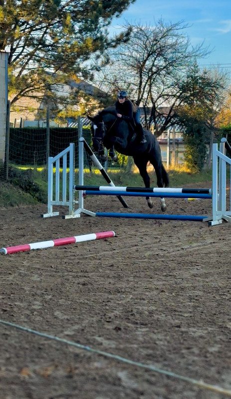 J'étais prête à dire à ma coach qu'on allait éviter le galop aujourd'hui...mais j'ai attendu de voir et au final on s'est détendus tout les deux...il était super en avant, (on tend les rênes mais on ne travaille toujours pas la mise en main), je trouve que niveau direction il y a eu un gros mieux en peu de temps, il commence a répondre à la jambe, on a même fait les 1er pas de session (vraiment très peu, genre je doublais à 1 m de la piste pour qu'il se fasse "aspirer" par le bord, donc il avait 2 pas de session à faire mais il a bien fait)