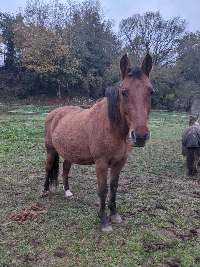 Elle profite des derniers brins d'herbe (+ foin), je pense que je vais passer la petite troupe au box la nuit et paddock d'hiver d'ici quelques jours.