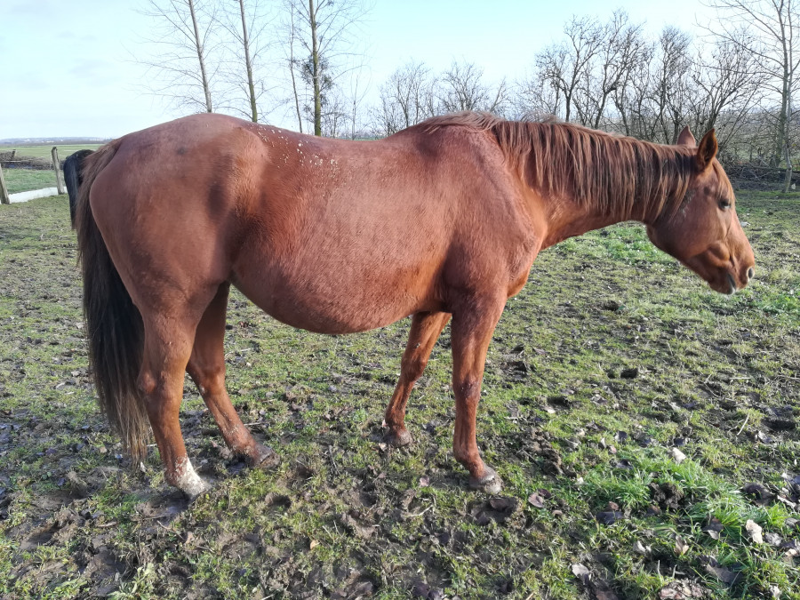 Pour le moment, je n'ai pas encore senti le poulain et j'ai plus l'impression que son gros ventre est dû au foin plus qu'à autre chose...