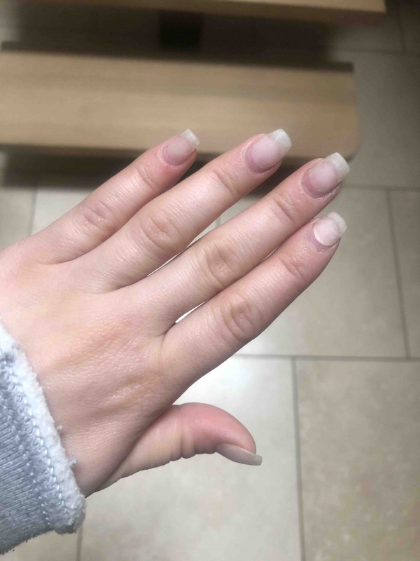 Sur la photo je suis à 4 semaines de semi permanent j'ai tué mon pouce hier en voulant accrocher mes clés à un porte clé sinon il n'y a qu'un seul doigt qui s'est écaillé