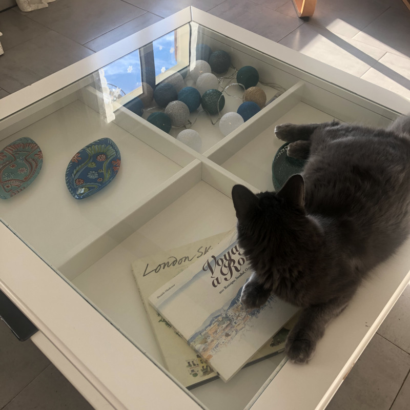Par contre je n’ai toujours pas installé ma crèche. J’ai des santons provençaux en argile auxquels je tiens beaucoup, et je vois aucun endroit où la mettre où il ne puisse pas monter