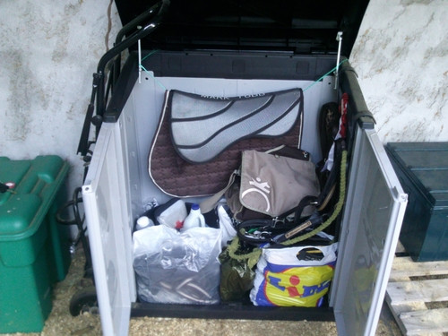 Sinon, c'est une grande sellerie "commune" (pas de casier, a la style d'une sellerie de club ou chacun met ses affaires la ou il veut/peut).