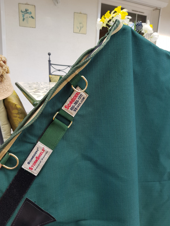 IMPERMÉABLE/RÉSISTANT À L’EAU – Il s’agit du tissu extérieur du tapis, qui ne permet pas à l’eau de passer de l’extérieur jusqu’à la peau du cheval. Tout tapis annoncé comme imperméable se réfère au tissu utilisé pour le tapis, plutôt que le produit entier. C’est parce que les tapis contiennent des coutures et des fixations qui ne peuvent pas être cousues pour empêcher la pénétration de l’eau, en particulier autour des rabats arrière ou surcingle’s. Bien que les fils gonflent pour remplir les trous de couture, le mouvement est tout aussi susceptible d’étirer les coutures