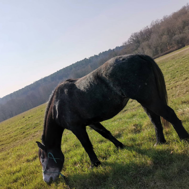 Donc env 8 km aller-retour, je l'ai descendu le matin et il a "mangé" dans mon paddock. Il s'est roulé aussi ! quelle joie c'est autre chose que la stabu pisseuse !