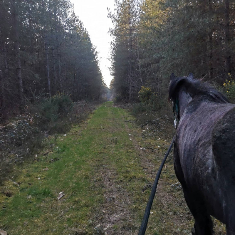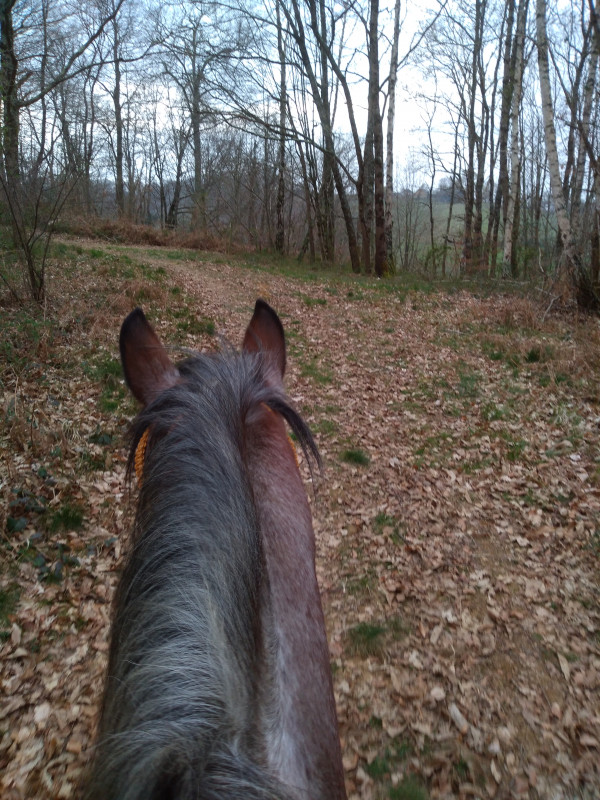 On a fait un peu de tout terrain a travers bois a un moment car on s'est retrouvé bloqué par une branche du coup un couple de gentil promeneurs nous ont indiqué par ou passer pour retrouver le chemin et comme avec les chevaux on ne pouvait pas forcément passer au même endroit qu'eux a pied le monsieur a été gentil de partir devant pour voir où est ce qu'on pouvait passer pour retrouver le chemin principal, c'était bien gentil de sa part Praline au top un vrai 4x4, le cheval de ma copine par contre un peu moins au top et comment dire un peu plus nerveux, mais on est bien passer quand-même.