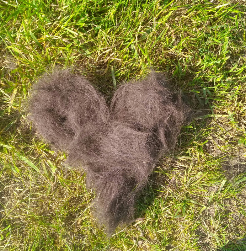 ensuite lavage au savon d'Alep puis au Sarnacuran. Et pour aérer les fanons je lui ai coupé les poils. Ya bcp trop d'épaisseur pour les ciseaux donc j'ai dû faire des lignes. C'est juste atrocement moche, avec des taillages horizontaux jusqu'au boulet puis une "boule" de fanons autour du bas des pieds !