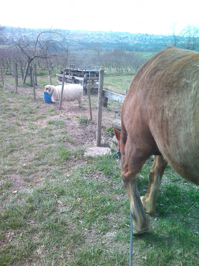 Puis il y a deux moutons aux ecuries , c'est bien elle peut les observer en broutant ;mais elle s'est deja bien habituée