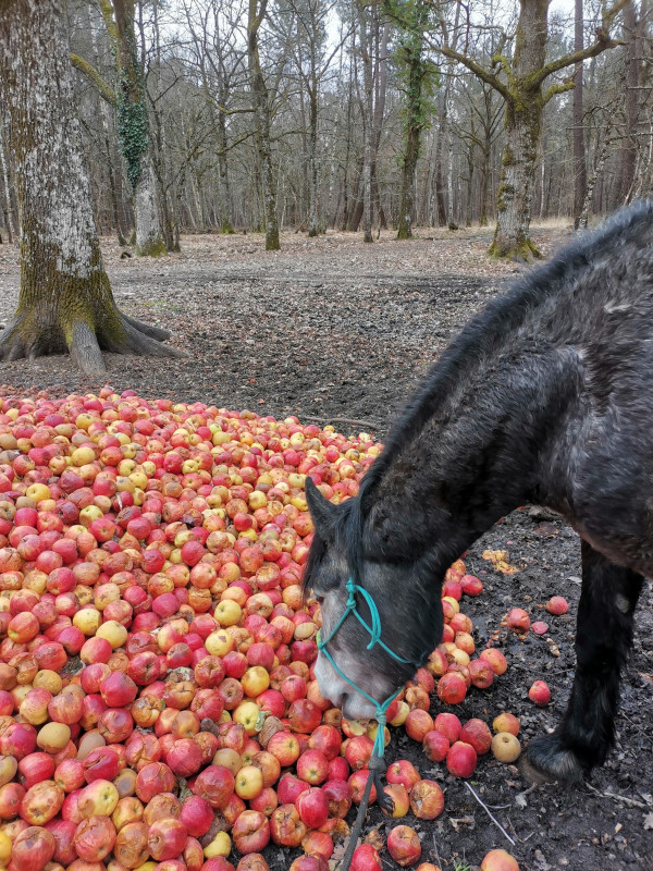 Elle a bien bossé ! Puis quelques minutes de TAP avec chacune des juments et petit tour rapide dans les champs pour rejoindre leur pré.