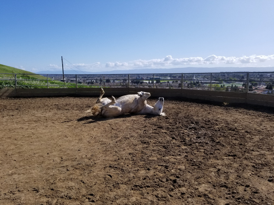 Mes chevaux remontent à la maison demain, ça va être plus facile à gérer. Il faut absolument que je remettes mon Trott-Trott au travail si on veut éviter la fourbure.