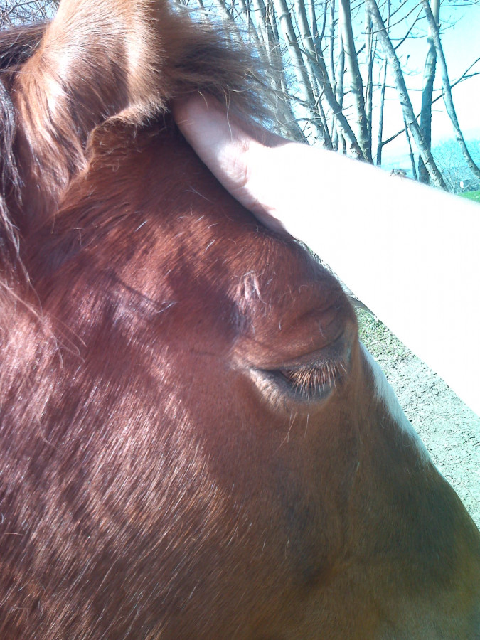 Puis un jour il voit des "masseuses" faire un "meridien vessie " et le cheval a la même reaction qu'avec le chiropracteur (machouillements etc )
