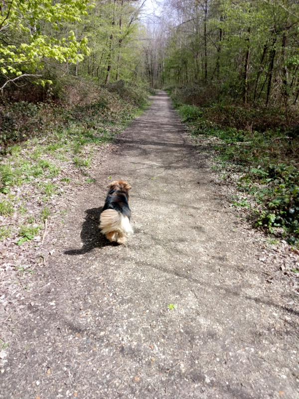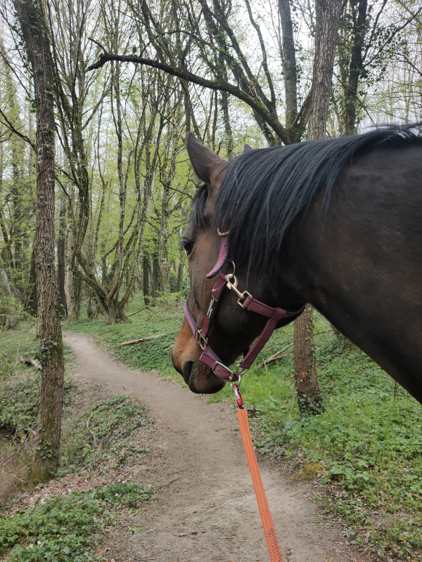 Aujourd'hui +8km à pied. On est partie faire un tour à pied en forêt après 3j monté. On a fait quelques pauses brouting à l aller et au retour mais on a bien marché.