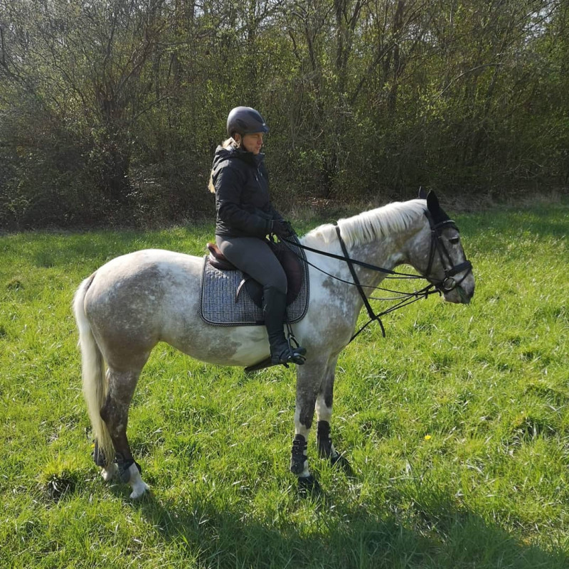 +12 km ce matin. Texane top jusqu'à ce que on recroisé le berger allemand de la dernière fois. Il a foncer sur nous en gueulant et essayé de nous mordre... La jument cabré demi tour et galop à fond. Heureusement ses copains ont pas trop bouger du coup j'ai réussie à pas tomber et on a chasser le chien. On a embrouiller sa proprio qui en avait rien à faire de nous...
