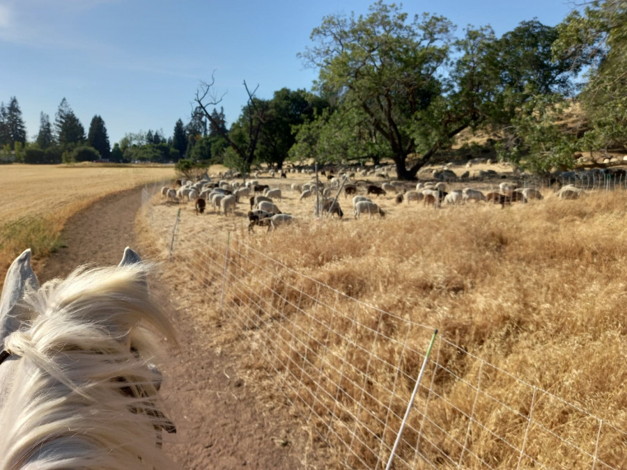 Un troupeau de mouton a été mis à l'entrée du parc de sentiers, pour manger l'herbe séchée et éviter les feux, c'était marrant Doudou qui se demandait "ça fait quoi ces choses-là". Il a bien pris le temps d'observer puis on est repartis tranquilles haha. Il y avait au moins 200 têtes !