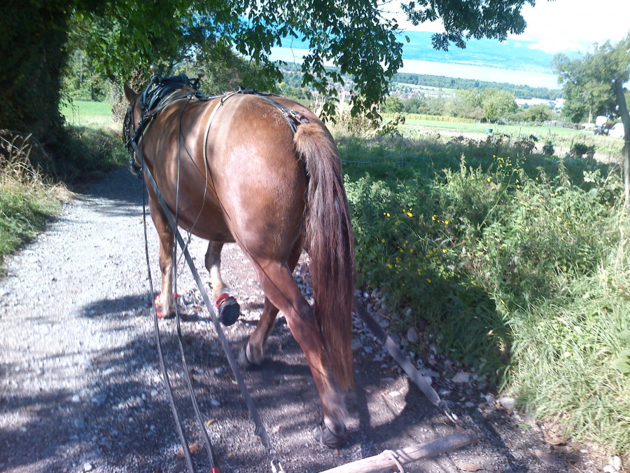 Elle a changé les pieds de Lorida, c'est impressionnant. Mon cheval avait des sabots très inégaux suite à une fracture d'un postérieur (donc compensation de poids). Alors que ça faisait 8 ans que mon ancien maréchal les parait "classiquement" et que je ne voyais donc aucune évolution, en même pas trois parages avec Julie, ses pieds sont redevenus quasiment parfaits ! :O