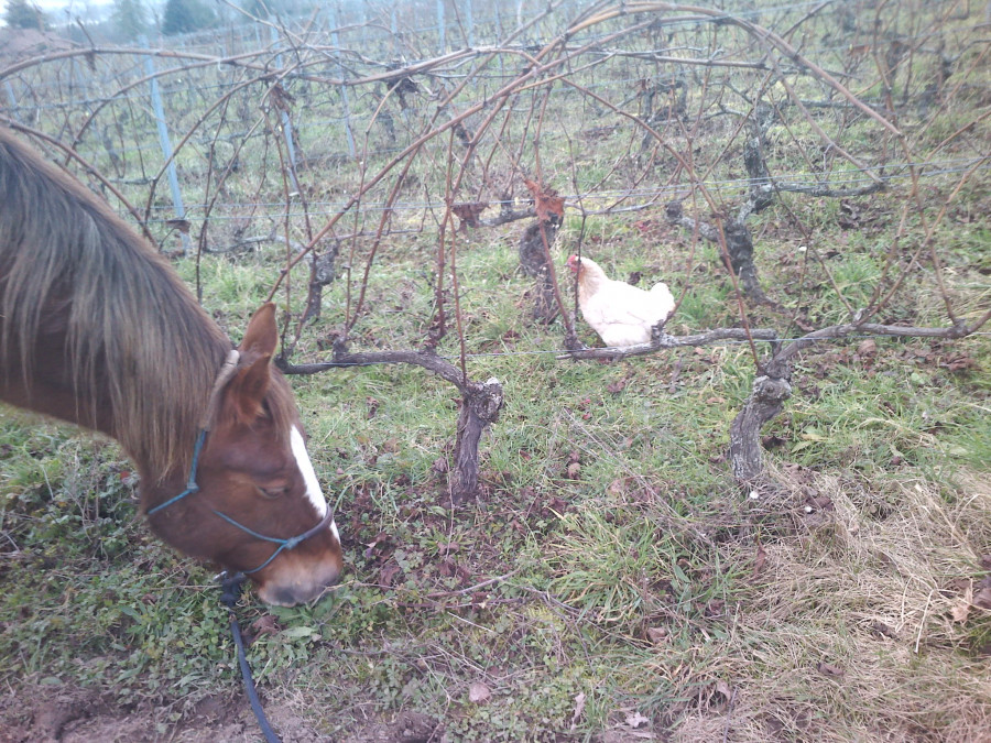 Du coup on a mangé pendant 3/4 d'heure en compagnie des poules qui sortent de leur enclos pour la même raison ...