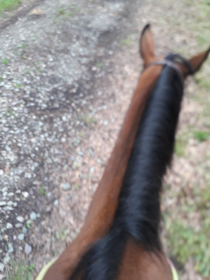 10km6 avec les juments en fin de journée. Dernière balade pour kara avant le départ en vacances de ma dp. Repos de 3 semaines pour ma vieille.