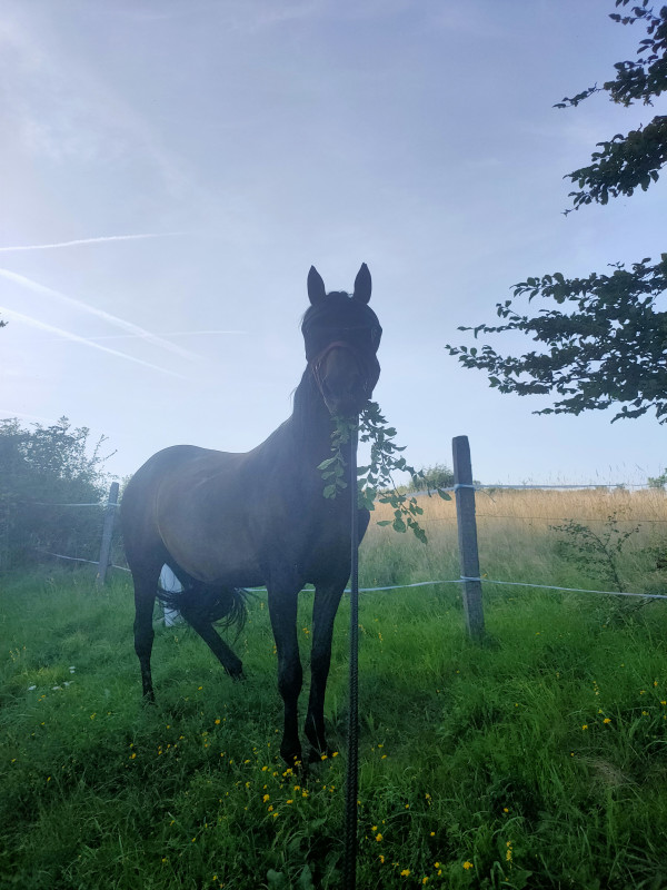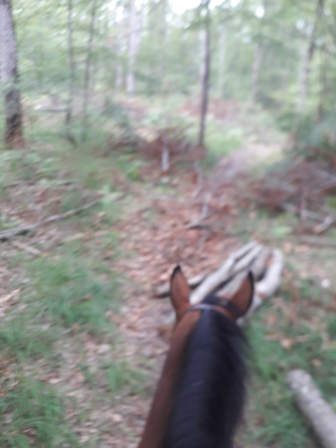 Hier j'ai pris Oskar, il n'était pas content de sa séance précédente (escargot !) car il s'est sauvé... puis il s'est laissé atrapper. Je voulais aller dans la forêt faire du dénivelé mais il faisait trop chaud donc direction le bois le plus proche "sur le plat" ! En LR. Superbe démarrage, maintenant il ne tente plus des demi-tours, il a pris confiance en lui.