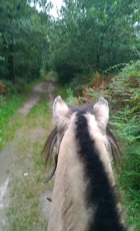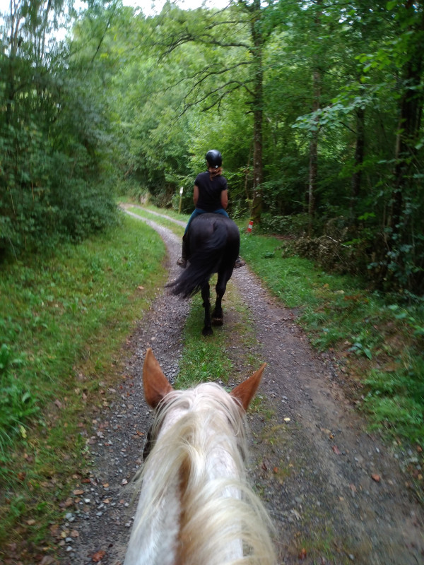 Fantasio est très gentil et respectueux. Il s'est mis en tête dès le départ et a marché d'un très très bon pas tout le long ! Un regal. La copine avait du mal parfois à suivre. Quelques trots et un galop.