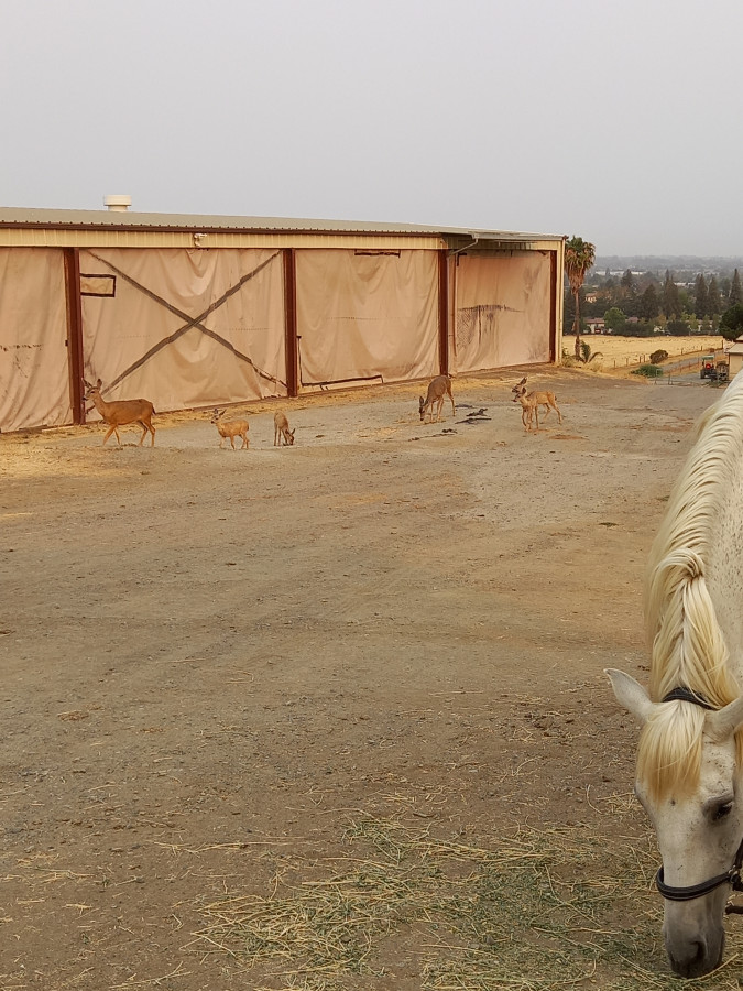 Puis il a accéléré en sentant une pâture avec des chevaux, j'ai fait un arrêt, j'avais le contrôle, on est passé, les chevaux étaient loin et nous ont dédaigné, Oskar a henni en restant calme.