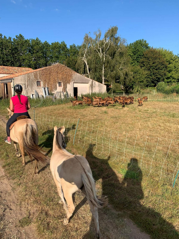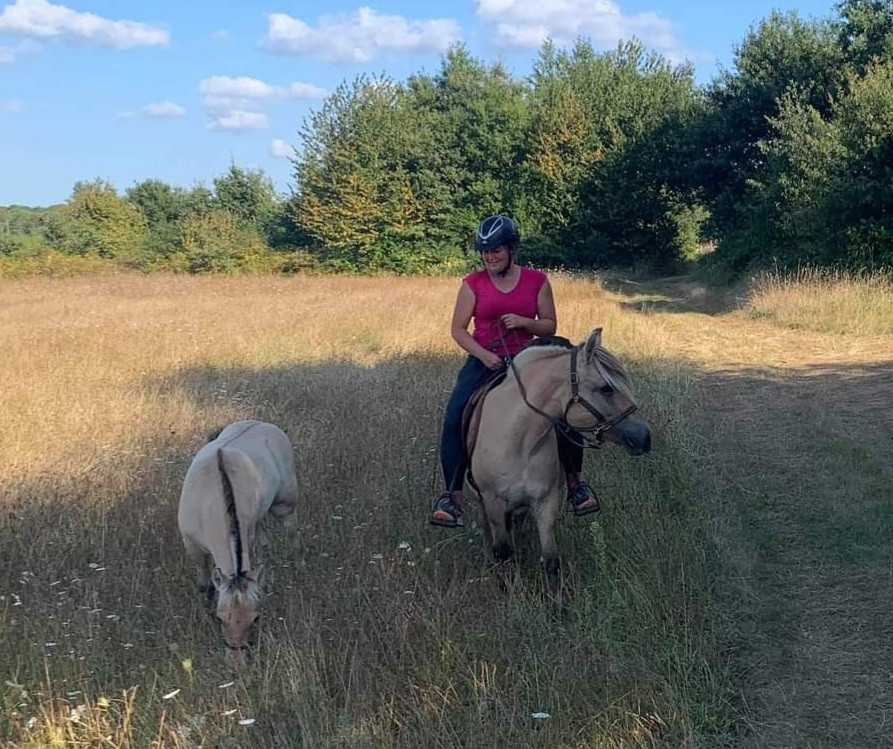 Balade avec Myrtille et Lupin accompagnés par 2 autres chevaux des écuries.