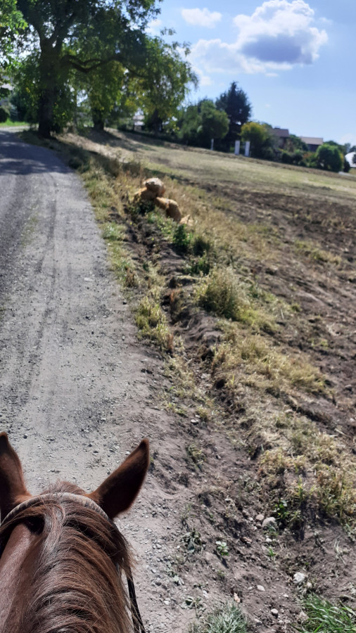 12 km 800 aujourd'hui avec une pause pique-nique, nous étions accompagné d'une cavalière et son trotteur, nos habituels compagnons.