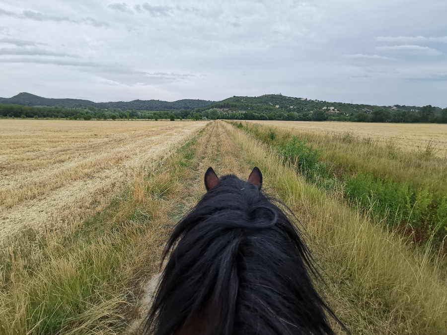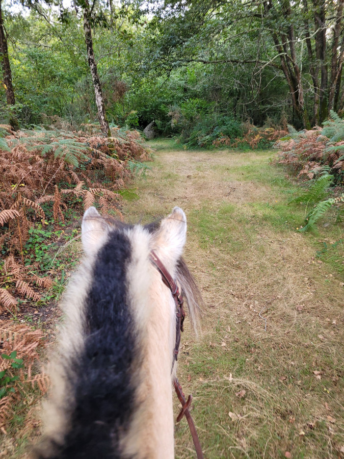 Chataîgne a été adorable ! Tantôt devant, au milieu, derrière, elle ne bronche pas. Relativement courageuse devant certains trucs d'humains (poste de chasse ; enrouleur à maïs ; ...). On est allé dans un coin qu'elle ne connaissait pas du tout, je regrette de ne pas l'avoir connu avant car les chemins sont vraiment super top là bas ! (6m de large, en belle herbe, plats sans trou... le bonheur).