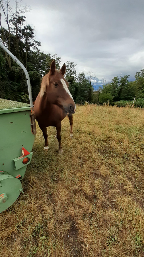 Châtaigne a un plus joli poil depuis quelques semaines déjà. Les endroits ravagés par la dermite ont bien repoussé. Le poil est tout doux et on a presque une jolie crinière en brosse