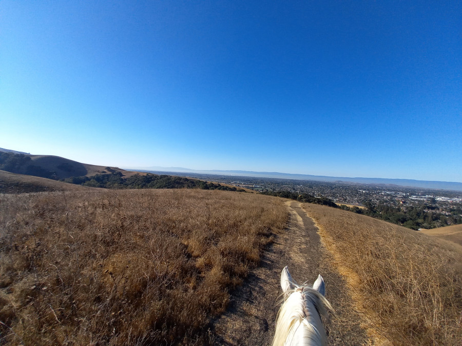 +4,33 km, pdt que je ramassais, Lotus broutait, il adore ! Comme son sac était plein j'ai rempli le mien de pommes puis je lui ai attaché sur le dos... il s'empiffrait tellement qu'il n'a pas fait attention... et au moment du départ les pommes ont roulé et il a bondi !