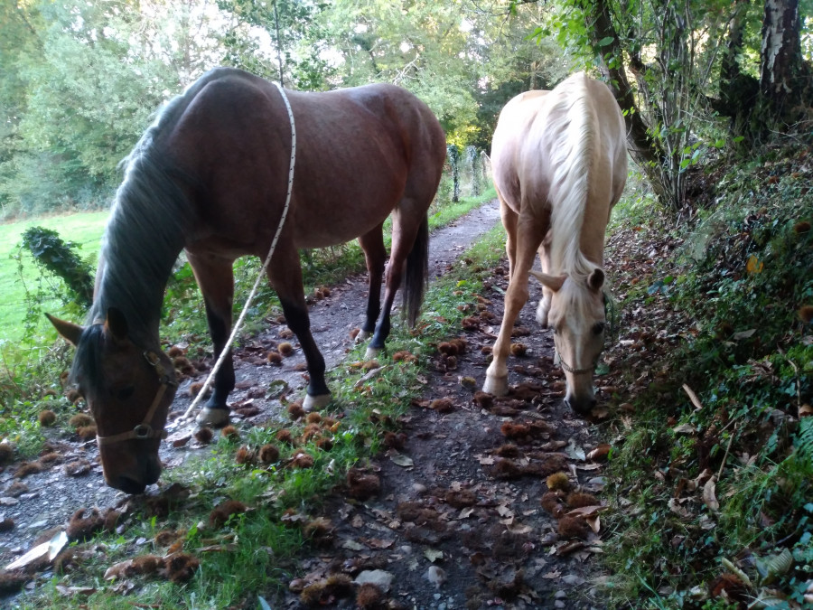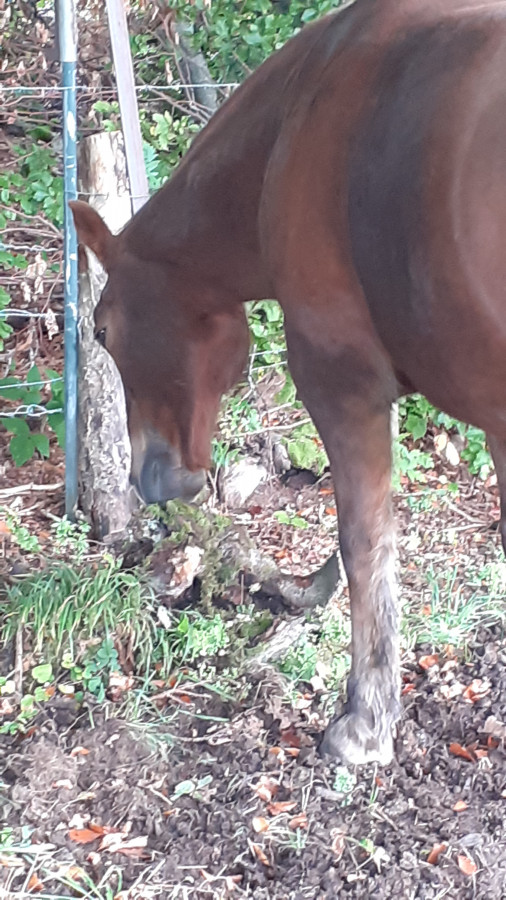 Ensuite retour à la maison, Oskar a bien sué, vermifuge, picotin et retour au pré.