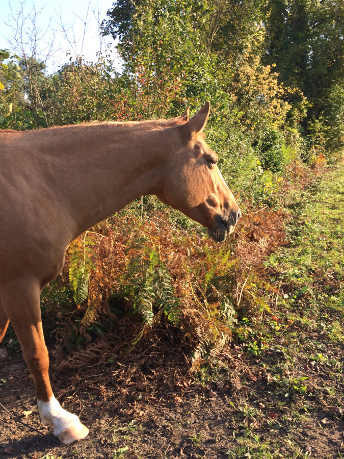 Hier balade de 10 kilomètres avec une belle frousse ! En voulant re-sangler j'ai mis pieds à terre . Sauf que je n'avais pas vue le fesan dans le buisson .. il à surgit juste sur le côté, Or à fait un écart .. mes étriers lui on fait peur du coup départ au galop ! Et la bipède que je suis se retrouve seule et a pieds sans rien avoir compris !