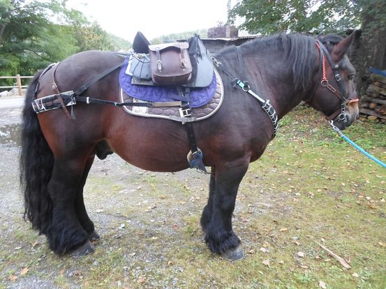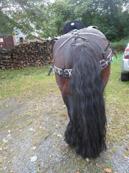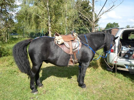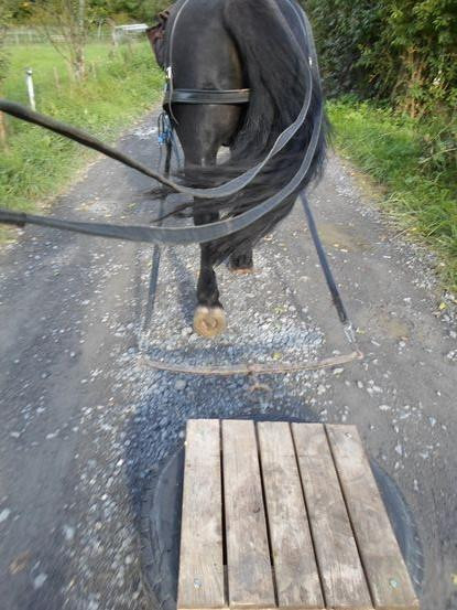 le cheval a fait une embardée, manquant de se prendre une voiture qui arrivait derrière, elle lui a hurlé des insanités puis "t'as déjà vu des tracteurs idiot", bah vu comme il était hystérique, elle a eu de la chance qu'il ne se barre pas ventre à terre... Du coup toutes les voitures ayant été témoin de l'incident se sont prudemment arrêtées et nous ont laissé passer...