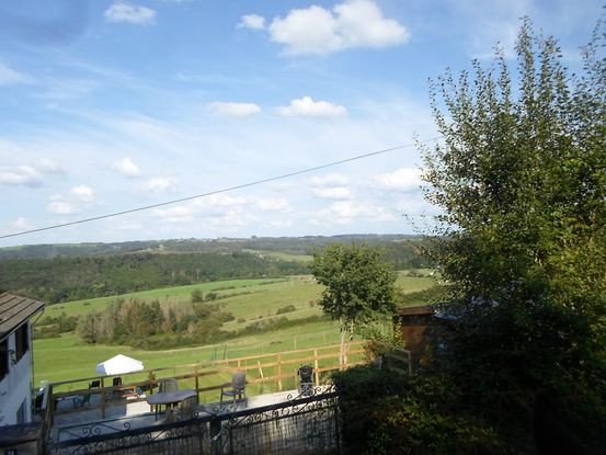 et on est parti en promenade en main, je voulais faire du dénivelé mais arrivée en haut de la côte des Grottes j'ai pas eu le temps d'aller sur la colline de l'antenne téléphonique, donc on a fait le tour de la colline des Grottes, dans la forêt d'automne, les chalets belges. +8,18