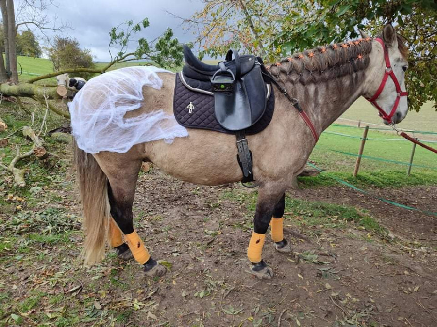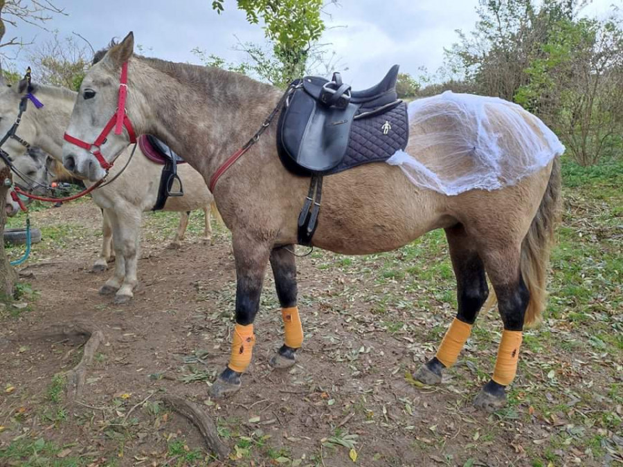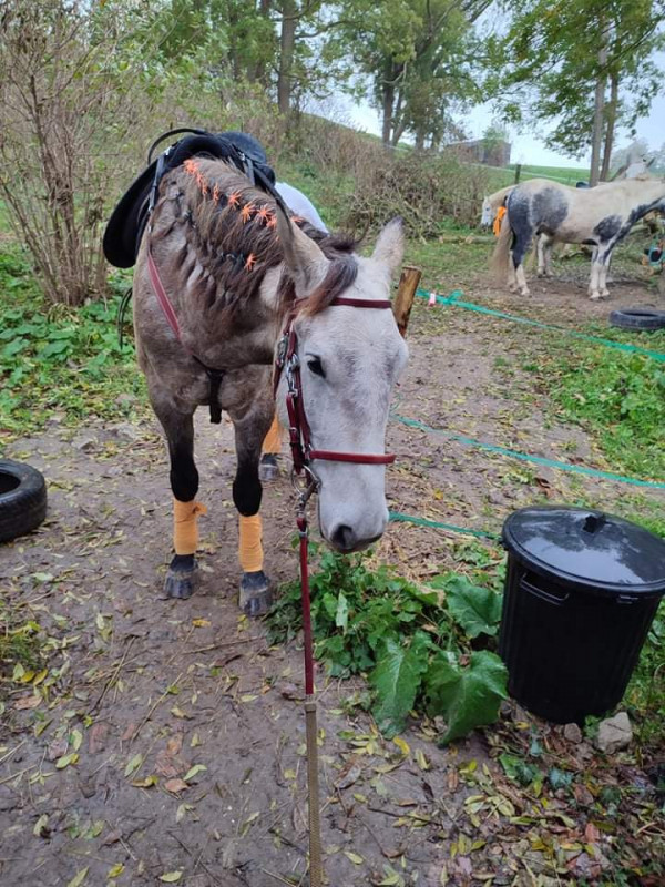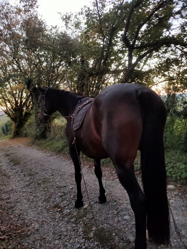 Cet AM j'ai ramené Oskar à la maison, je l'ai brossé, (il s'était roulé le saligot !) ensuite tapis et bridon et je monte !