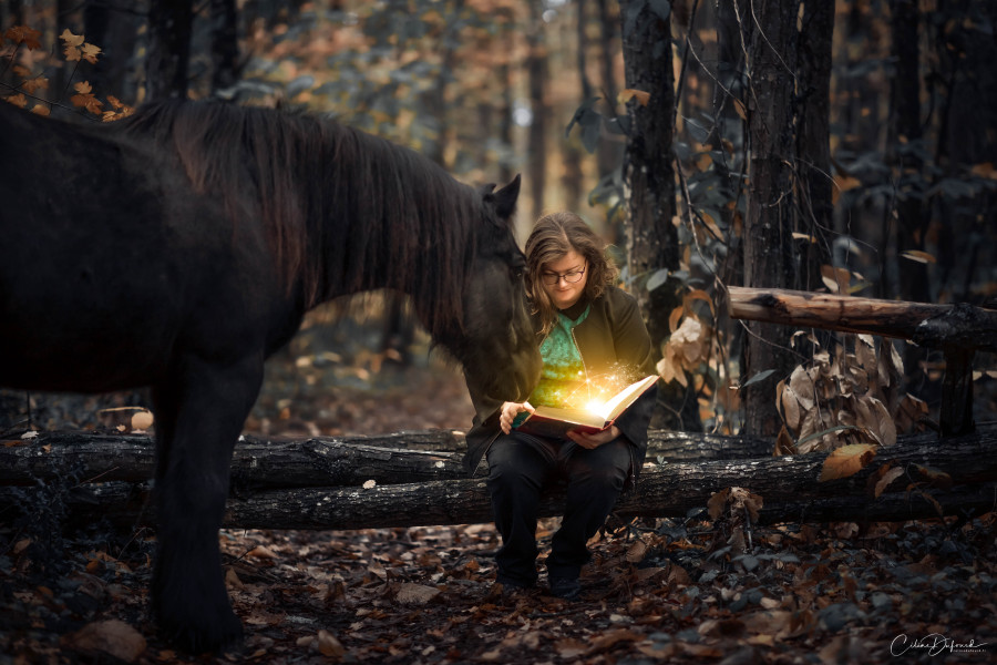Au début, cheval pas trop avec moi, il brouttait les quelques brins d'herbe. A un moment donné, il a quand même réalisé qu'il se passait quelque chose et il a poussé un gros soupir. Je passe de l'autre côté, il était plus avec moi, il respirait un peu fort.