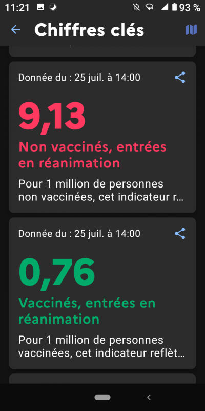 - le variant Delta représente 93% des contaminations