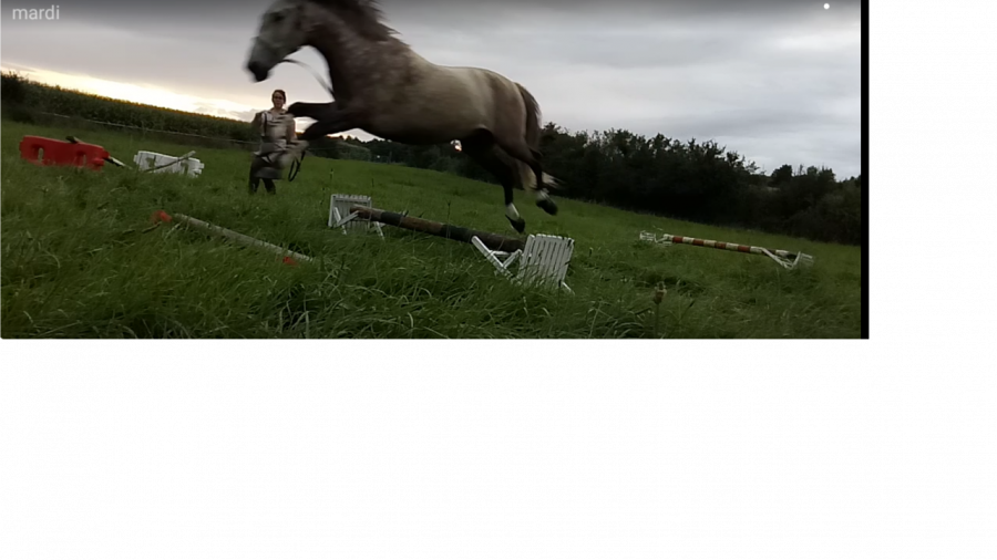 La longe: c'est pas mal mais je trouve qu'il n'est pas à 100% avec toi, c'est dommage. Peut-être essayer de demander des choses de manière très rapprocher quand il déconnecte pour le reconcentrer sur toi, un peu dans le même principe qu'à cheval, on demande des exercices de manière rapproché pour le concentrer et le focaliser sur nos demandes?