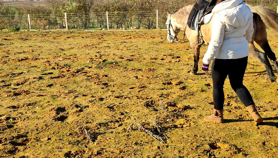 On travail beaucoup à pied en ce moment on bosse la longe (en licol) :
