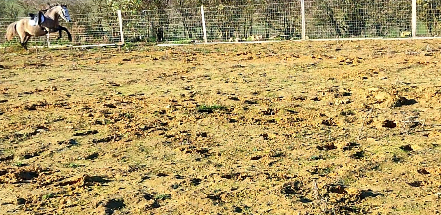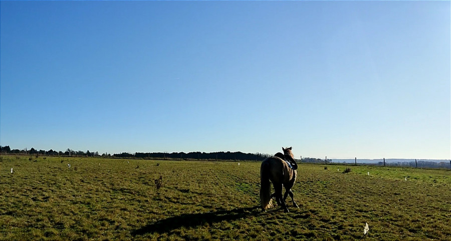 Je n'ai pas d'installations : pas de carrière, pas de douche etc... Mais j'ai un terrain en herbe dans lequel je fais un paddock provisoire de temps en temps pour les chevaux.