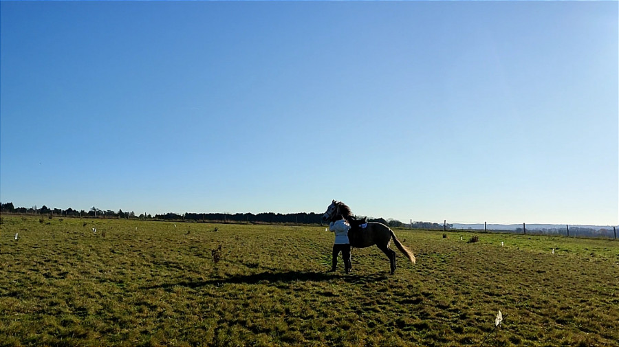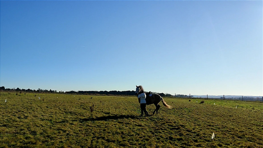 Puis je la lâche en liberté et c'était la folie : trot / galop / coup de cul / accélération / pile / demi-tour...