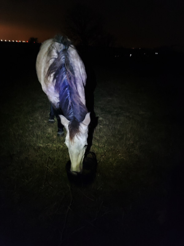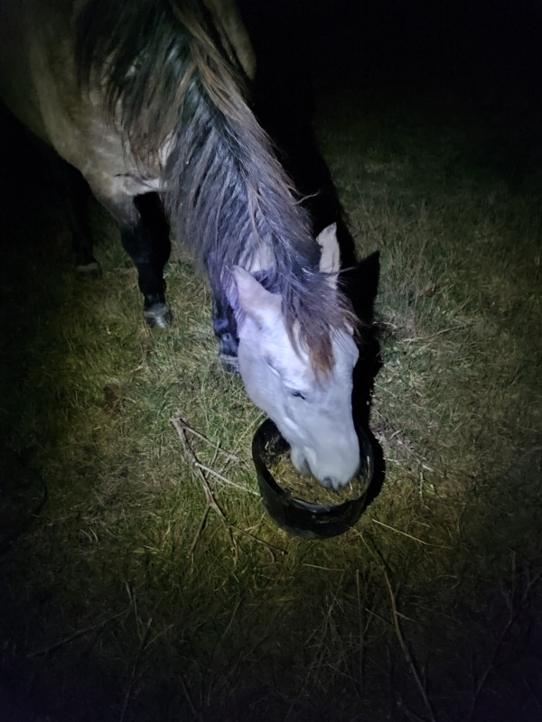 Ce soir, je suis passée hyper tard (20h), en plus ja i du faire les soins des yeux de 2 chevaux du pré. J ai quand même fait la séance de travail à l épaule, il faisait bien froid j avais les pieds gelés, il va falloir que je ressorte les chaussettes épaisses et les gants. On a commencé par du pas avec de l incurvation et des lignes droites, étonnamment a gauche nickel et a droite il a essayé un peu de s appuyer alors que ça fait des mois que c était l inverse Ensuite un peu d épaule en dedans puis un peu de trot. Bon le trot compliqué il voulait dépasser, il voulait aller en épaule en dedans pour rejoindre les copains... Mais après nickel, il se tenait vraiment bien en plus. On a alterner pas et trot sans changer d'attitude. On a fini au pas par enchaîner des épaules en dedans, hanches en dehors, demi tour sur les épaules, cession et demi tour sur les hanches. A main droite il est un peu crispé sur le mors même si il s appuie pas trop par contre à gauche, il machouillait vraiment bien