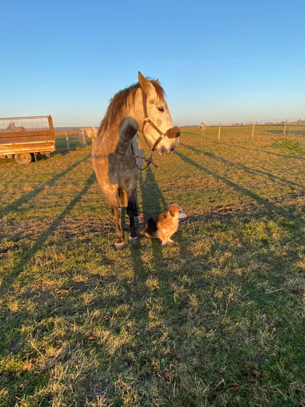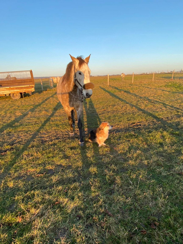 Pour le TAP, comme on est resté sur l'herbe devant le pré, j'avais peur que Frits essaye de brouter plus qu'autre chose. Il est bien resté connecté et on a revu le yoyo (gros progrès, pourvu que ça dur). Chéri s'est moqué, chéri a testé, chéri s'est pris un râteau et a du bosser. J'ai du l'arrêté pour qu'il accepte de faire peu mais bien car il voulait trop. Puis décomposition des codes, Frits a essayé de remixé donc on a passé quelques minutes dessus pour réavoir propre et un peu de transfert de poids pour finir avant de rentrer.